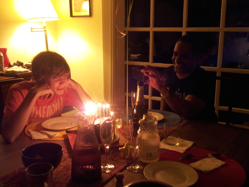 Philip blowing out his birthday candles