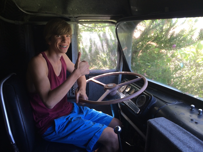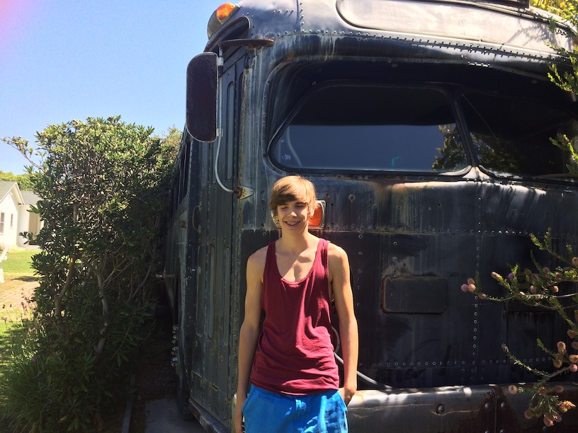 Philip behind the wheel of Bob Dylans Tour Bus